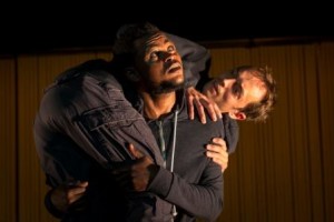 Sur scène, l’hallucinant Mathieu Genet, qui interprète Serge Amisi tout au long du spectacle avec une énergie et une sincérité rares, et Serge Amisi lui-même qui interprète les autres rôles de la pièce (la mère de famille qui le recueille, son oncle, sa mère, les gradés de l’armée rwandaise qui l’avaient enrôlé de force, le fournisseur de cannabis…). Leur duo semble nimbé d’une complicité et d’une confiance lumineuses qui rend ce spectacle possible. Comment en serait-il autrement lorsqu’une telle intimité est en jeu ? Lorsqu’une expérience aussi extrême est portée à la connaissance du public ? Quand quelqu’un porte une parole qui dit : « J’ai tué. J’ai tué sans pitié des civils. J’ai même tué mon oncle, qui est mort en me pardonnant. J’ai pillé et détruit. Et j’étais un enfant ». Il faut profondément croire en la bienveillance de ses partenaires pour aller jusqu’à ce point, frisant le rituel d’expiation et poser crûment la question fondamentale de la responsabilité.